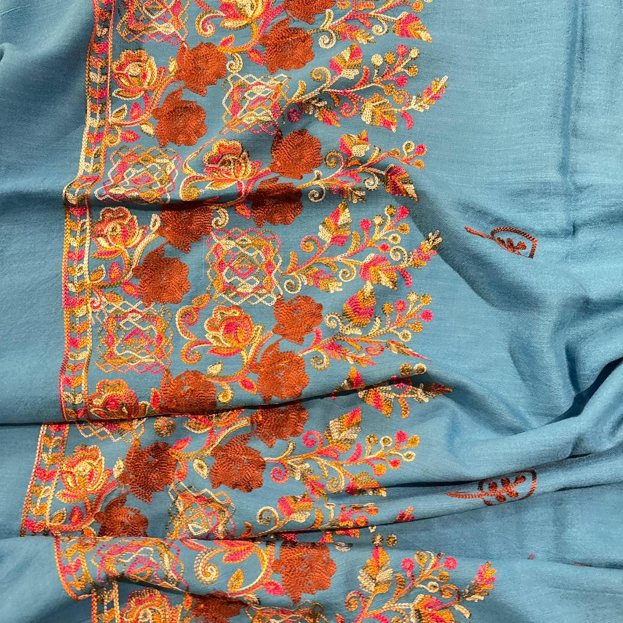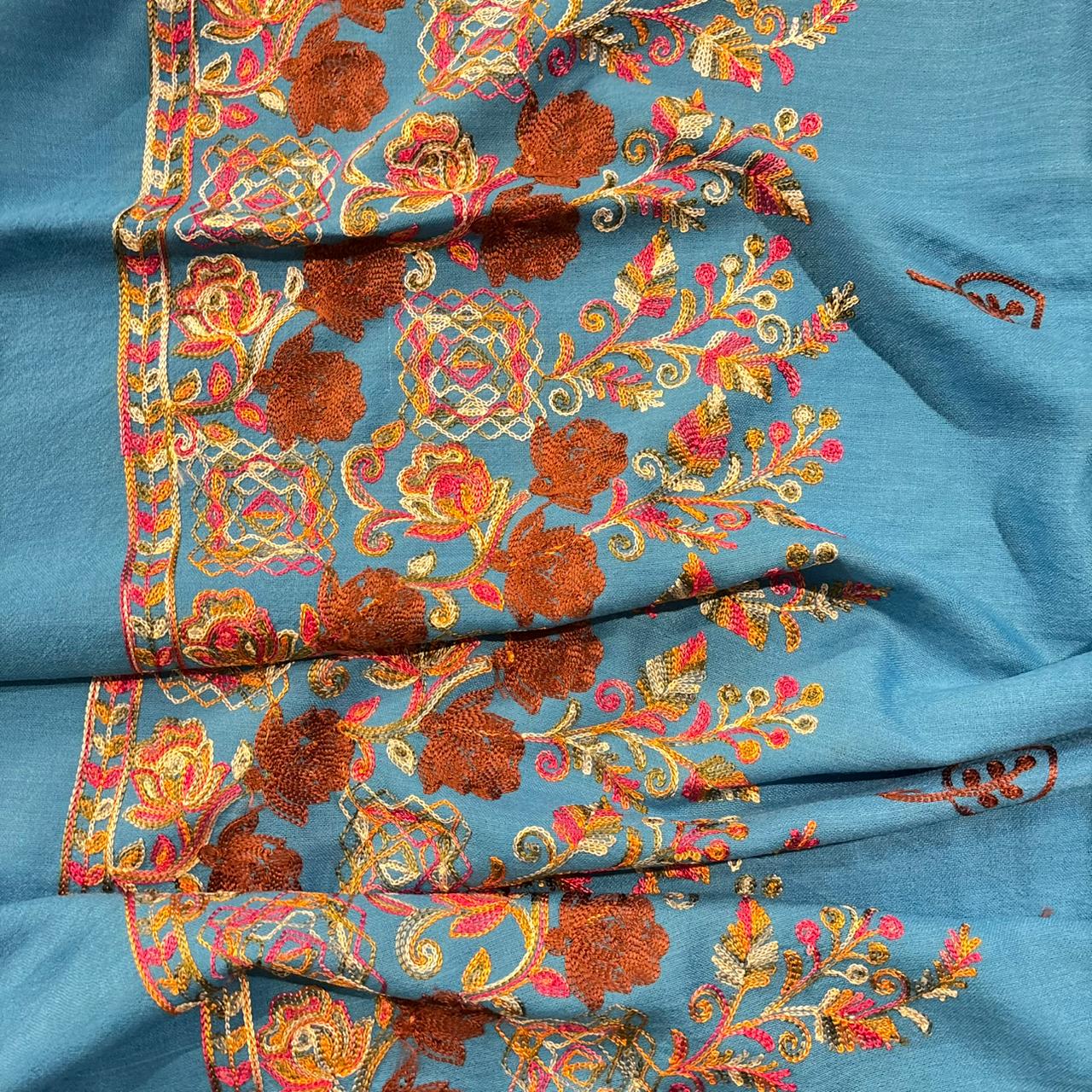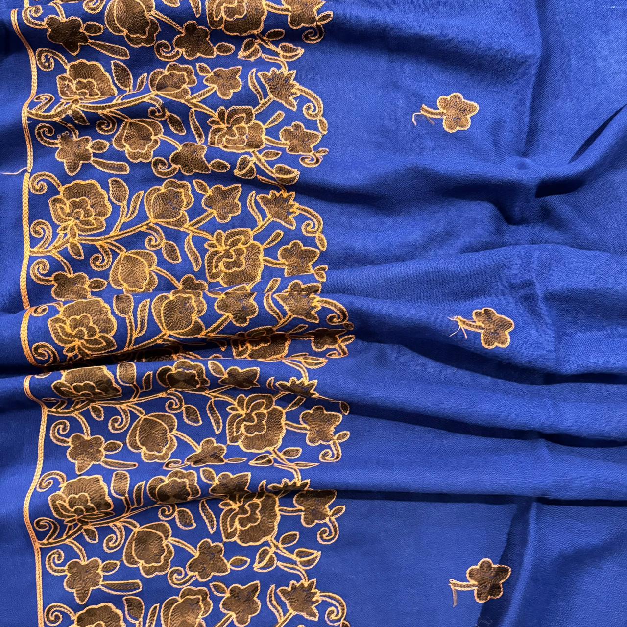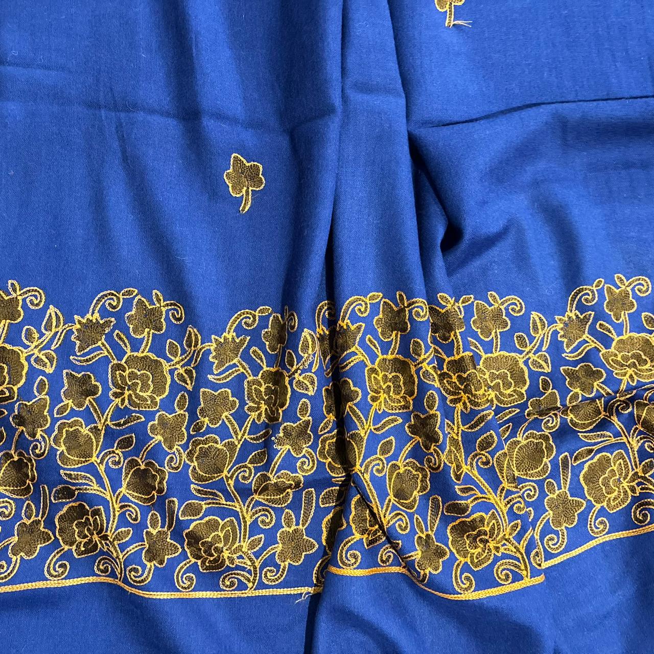 Experience timeless elegance with this blue woolen embroidered shawl, crafted for both warmth and style. Expertly woven from high-quality wool, it offers exceptional comfort during cooler months. The intricate embroidery adds a refined touch, making it suitable for formal occasions or elevating everyday attire with a sophisticated finish. Durable and lightweight, this shawl is an essential accessory for those who appreciate craftsmanship and classic design.