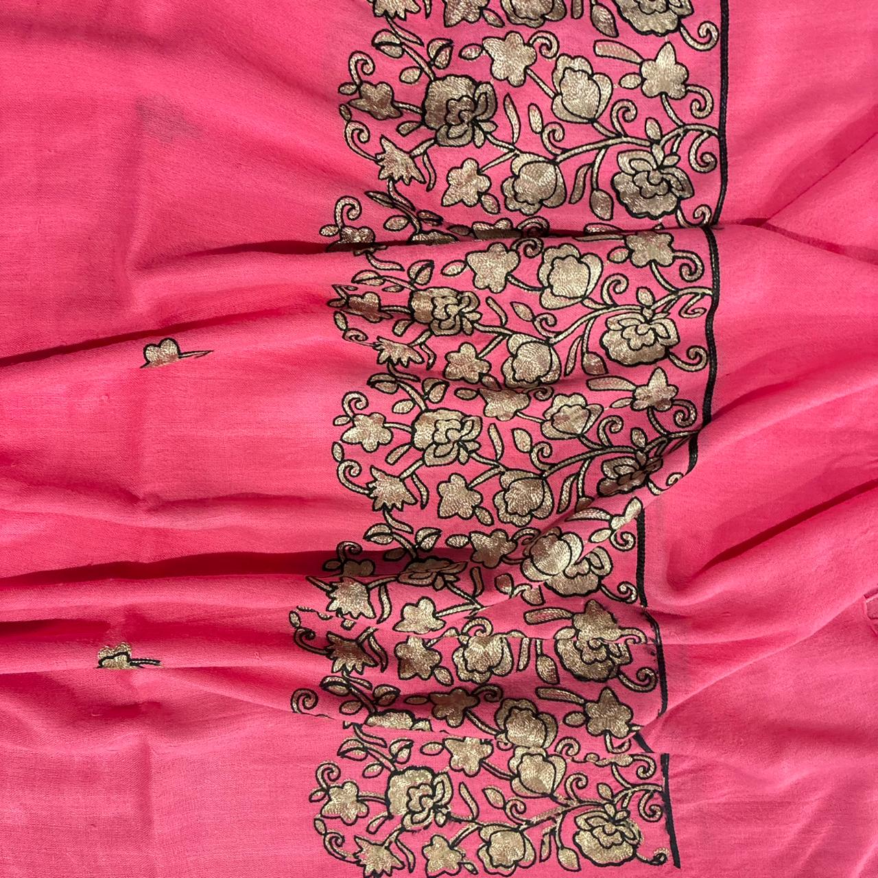 This grey woolen embroidered shawl combines warmth with intricate craftsmanship, making it a sophisticated accessory for cooler seasons. Its fine embroidery adds elegant texture while the wool fabric ensures comfort and insulation. Perfect for enhancing formal or casual outfits, this shawl offers both style and practical warmth.
