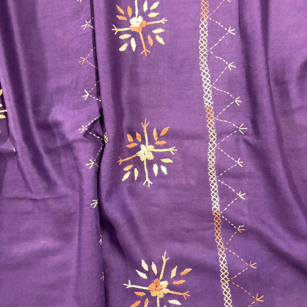 Experience unmatched warmth and elegance with this Purple Woolen Embroidered Shawl. Crafted from premium wool, it offers soft insulation perfect for chilly weather. The intricate embroidery adds a sophisticated touch, making it ideal for both formal occasions and everyday wear. Lightweight yet cozy, this shawl effortlessly enhances your ensemble while providing durable comfort.
